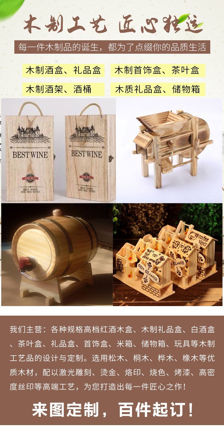 曹縣春藝工藝品有限公司是一家專業的紅酒木盒供應廠家,所生產的木制酒盒設計新穎,款式多樣,可以 滿足不同層次紅酒的包裝需求,如果您需要采購紅酒木盒,可與我公司取得聯系。 規格:有單瓶裝紅酒木盒、雙瓶裝紅酒木盒、三瓶裝紅酒木盒、四瓶裝紅酒木盒、六瓶裝紅酒木盒、十二 瓶裝紅酒木盒等; 款式:松木翻蓋、松木抽拉蓋、松木燒色、松木噴漆加內襯盒子; 其他:所有產品均可根據要求來圖來樣定做。