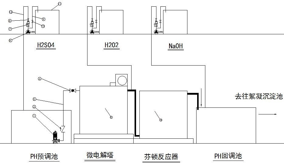 另外芬頓反應器需在酸性(PH=3-4)條件下運行,故需根據水質配置PH調節池、PH回調池及混凝沉淀池。